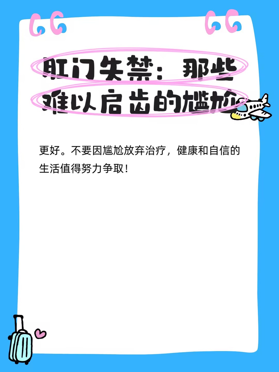 那种突如其来的尴尬感,只有经历过的人才能体会——咳嗽时、大笑时,甚至走路时,粪便不自觉地溢出,内裤总是脏的,身上总有异味……这种难以启齿的痛苦,让多少人选择了沉默和逃避。但你知道吗?肛门失禁不是“羞耻的秘密”,而是一种需要正视的医学症状!它可能是身体发出的重要健康警报,背后隐藏着括约肌损伤、神经病变或其他肛肠疾病。这篇科普将带你全面了解肛门失禁,学会科学应对,重拾生活掌控感!