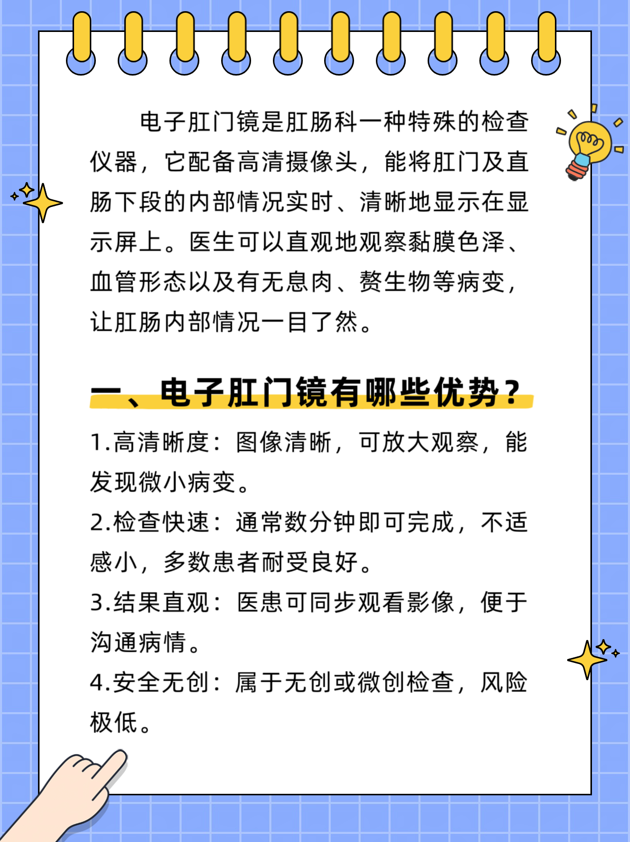 电子肛门镜是肛肠科一种特殊的检查仪器,它配备高清摄像头,能将肛门及直肠下段的内部情况实时、清晰地显示在显示屏上。医生可以直观地观察黏膜色泽、血管形态以及有无息肉、赘生物等病变,让肛肠内部情况一目了然。深圳市中医肛肠医院肛肠七科,已常规配备先进的高分辨率电子肛门镜系统。我们致力于将前沿技术与专业经验相结合,为每一位患者提供精准、舒适、人性化的检查体验,切实守护您的肛肠健康!