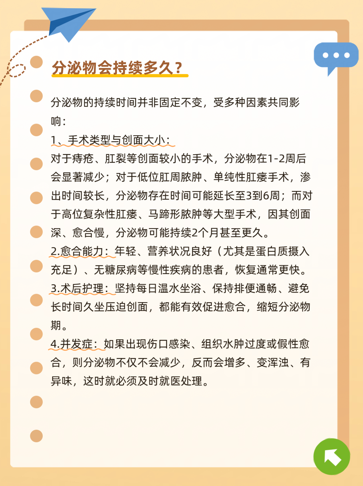 肛肠手术后,伤口出现分泌物是愈合过程中的常见现象,这些分泌物从何而来?会持续多久?如何区分正常渗出与感染征兆?又该如何进行护理?下面将为您系统解析术后分泌物的来源、演变规律及识别要点,并提供切实可行的护理建议,帮助您消除焦虑,以正确的方式让伤口顺利愈合,平稳度过恢复期。