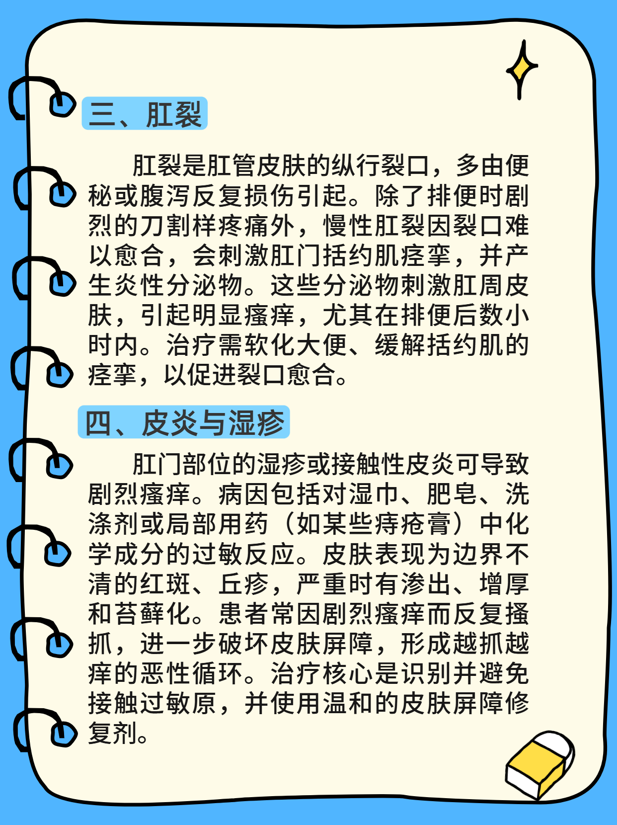 肛门瘙痒,这一难以启齿的困扰,常令人坐立不安。其背后的病因多种多样,可能是痔疮、湿疹等局部问题,也可能是糖尿病、肝胆疾病等全身疾病的局部体现。盲目止痒往往治标不治本,甚至延误病情,下面一起来梳理一下引起肛门瘙痒的各类常见原因,以便更有针对性地进行治疗。