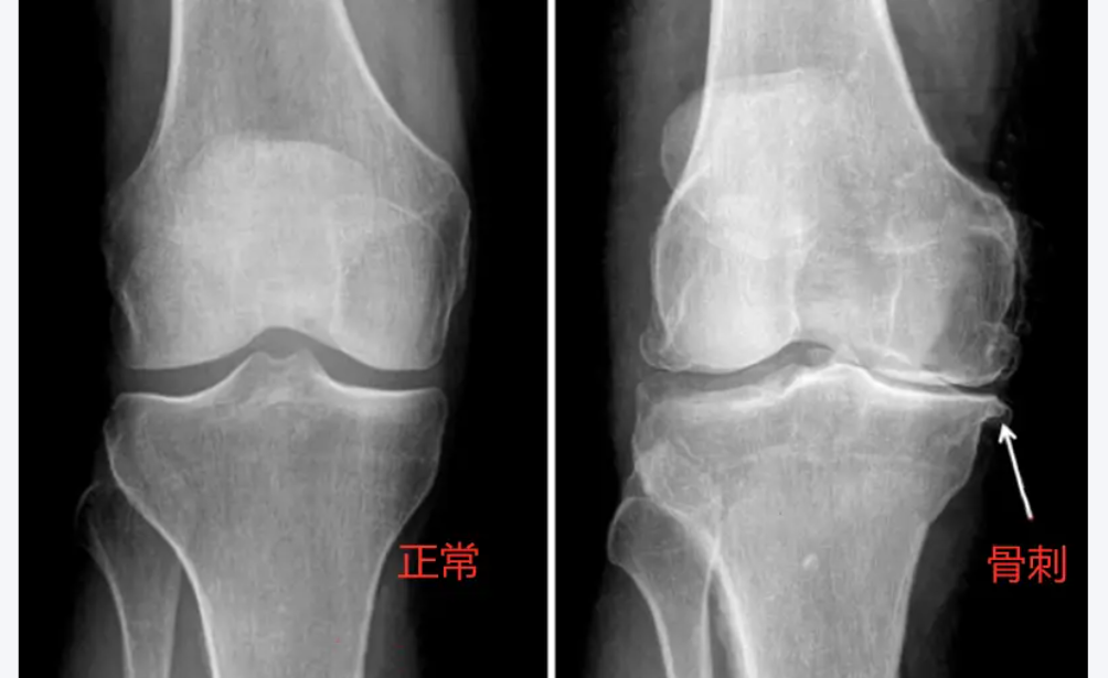 2、骨质增生(骨刺):软骨磨损后,骨头边缘为增加稳定性而代偿性增生(起初是良性增生),形成骨赘(骨刺),进一步刺激周围组织引发疼痛。