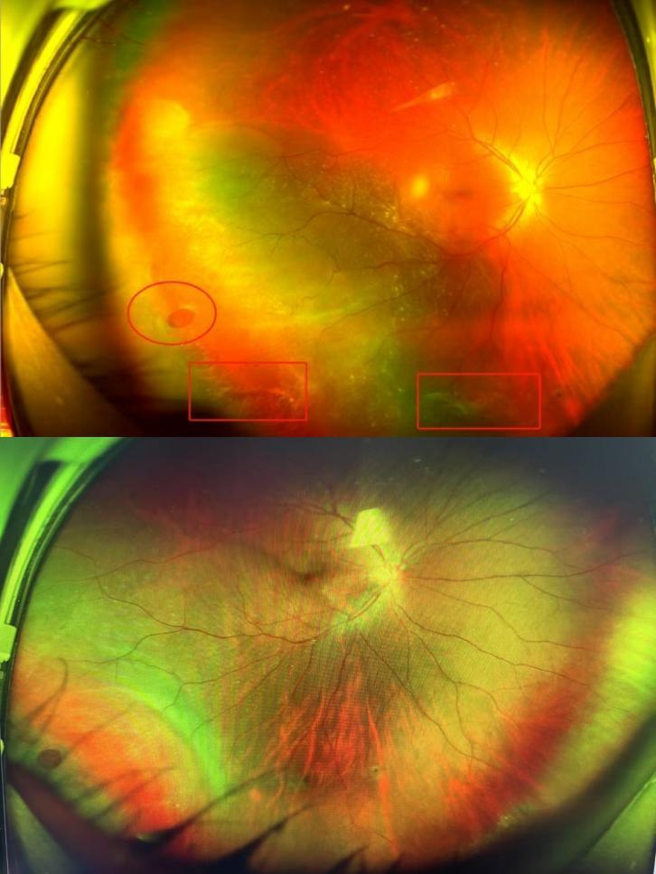 脱离的视网膜被复位 一“球”搞定3处裂孔