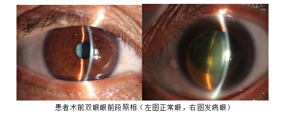 胡主任检查后吃惊地发现,患者的左眼瞳孔散大,且晶状体已全部脱位至前房,完全堵塞房角,导致眼内房水无法正常排出,眼压急剧升高,这正是引发他剧烈疼痛的“罪魁祸首”。胡主任当即判断这是晶体脱位继发性青光眼,属于眼科急症,必须尽快安排住院治疗。