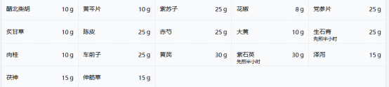合欢皮15 川芎15柴胡15 郁金15 陈皮10 党参25