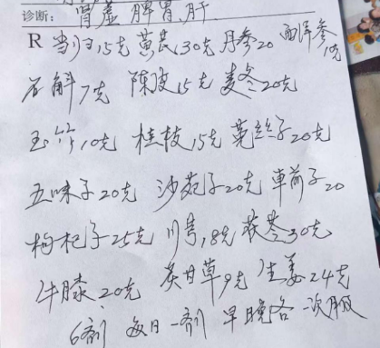 按语:因此次就诊门店无沙棘,故去掉。头部发紧及小腿后侧抖动推测与后半身经络气脉阻塞(尤其是颈肩部),及既往脾运不良,无法生血、血虚生风有关,故嘱患者多拉伸颈肩部,中药加当归10g。
