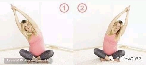 2.第二个动作,可以站立位,也可以如图中坐位。记住几个原则:呼气弯曲,保持10秒,吸气变直。次数由孕妇当时状态决定(做之前请咨询您的医生)