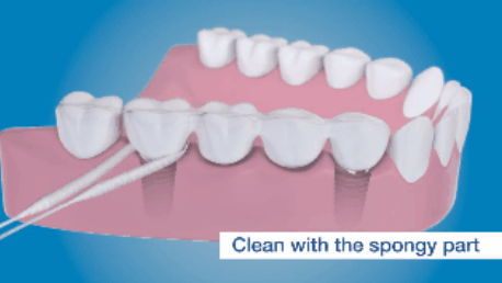 超级牙线的末端较硬,中间海绵状,方便清洁。可以用末端穿过牙缝,用中间海绵的牙线清洁牙龈边缘和桥体。