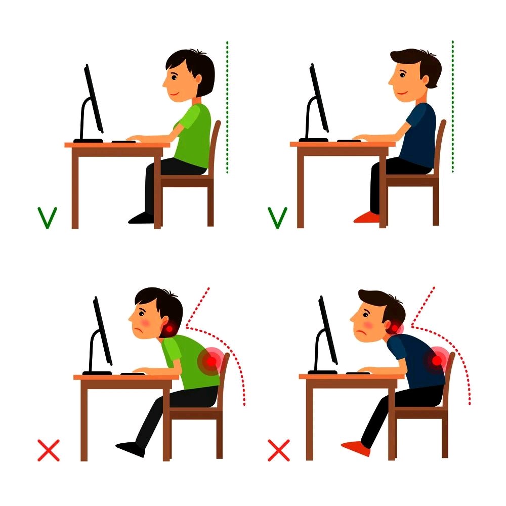 01保持正确坐姿正确的坐姿要求是“坐如钟”,即坐相要像钟一样端正。时时保持颈、胸、腰挺直,避免耸肩、弓背,确保手臂、腰部有扶托,双脚着地。