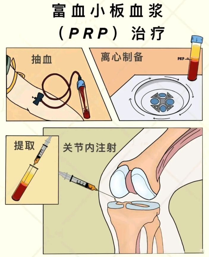 2、作用机制:PRP注射后可激活机体的免疫应答,降低关节内IL-6、TNF-α介导的炎性反应,控制感染和缓解疼痛:prp中富含多种生长因子能刺激细胞的增殖、迁移、分化,参与基质合成,还能刺激新生血管形成,为受损关节软骨的再生增加血供和营养物质。