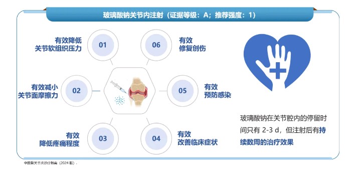 3、治疗周期:单膝1次1支(以玻璃酸钠计25mg),1周1次,5次为1疗程,一年建议使用1~2个疗程。