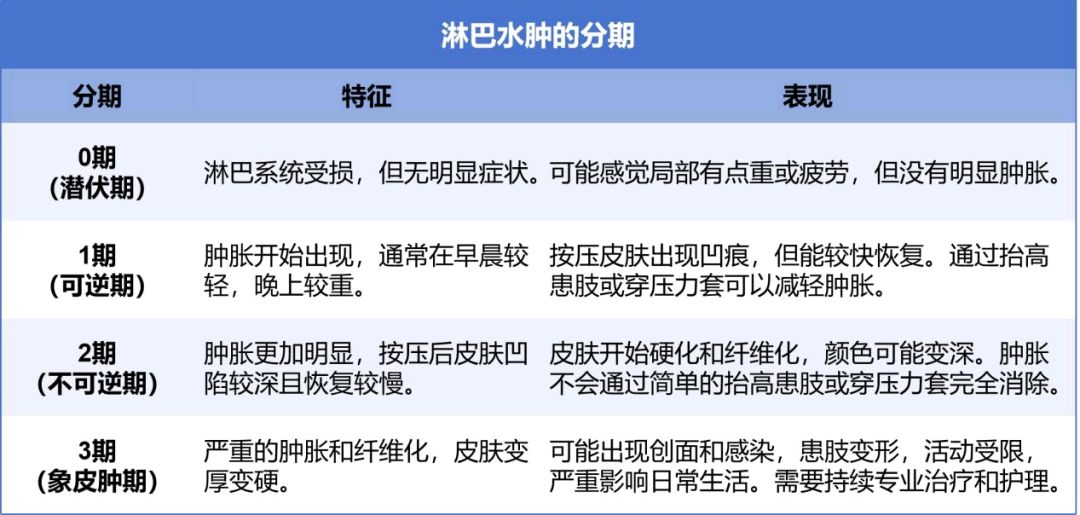 三、淋巴水肿的分期如何划分根据国际淋巴学会(ISL)的分期系统可分为: