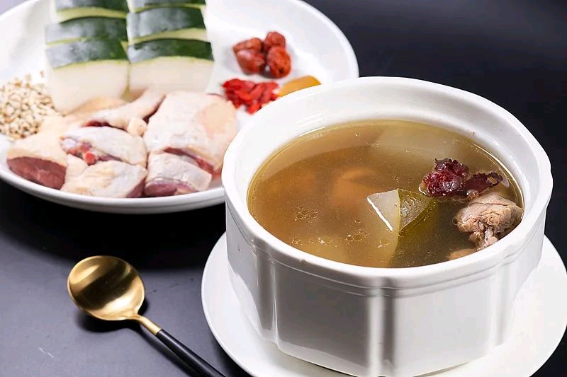 俗话说,“大暑老鸭胜补药”,鸭肉能够祛热清火、消暑。准备1只水鸭,与冬瓜、葱、料酒、姜等一同放入锅里,加入适量水,用大火烧开,再改小火煲2小时左右,最后加入适量食盐即可。
