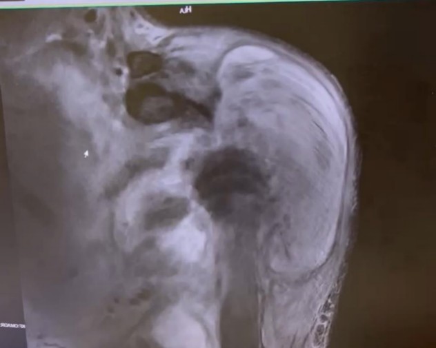 另一方面,手术前需要更清晰的影像资料来制定手术方案,但王哥每次做磁共振等检查时,都会不由自主地浑身发抖(心理障碍导致),没有办法完成磁共振检查,影像学上根本无法清晰呈现他目前整个右肩关节肿瘤的情况。同时,肿瘤也破坏了肩胛骨的关节盂,侵犯了肱骨近端周围的所有肌腱韧带,就算切除了肿瘤,如何重建一个稳定的肩关节,也是很大的困难。