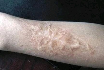 挛缩性瘢痕:瘢痕组织挛缩,致外形和功能改变,严重的会造成活动障碍。呈现挛缩状,会不断收紧,牵拉正常皮肤。常发于深度烧烫伤、手术后。