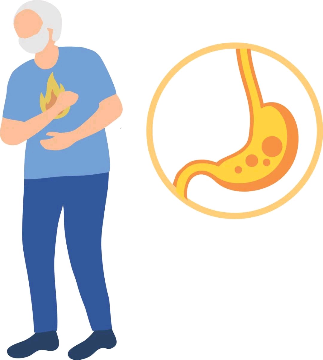 胃食管反流病患者最常见和典型的表现是反酸、胃灼热,常在进食后1小时出现,在弯腰、卧位、腹内压增加(如妊娠、肥胖、腹水、呕吐、负重劳动等)时症状会加重。有部分患者会出现胸痛,也有少数患者会出现咽喉炎、慢性咳嗽、哮喘等食管外症状。严重的胃食管反流病患者会出现上消化道出血、食管狭窄、巴雷特食管(即食管下段黏膜出现变性)等并发症。值得注意的是,巴雷特食管是食管腺癌的癌前病变,出现巴雷特食管的患者需接受密切随访,定期检查,以防癌变。