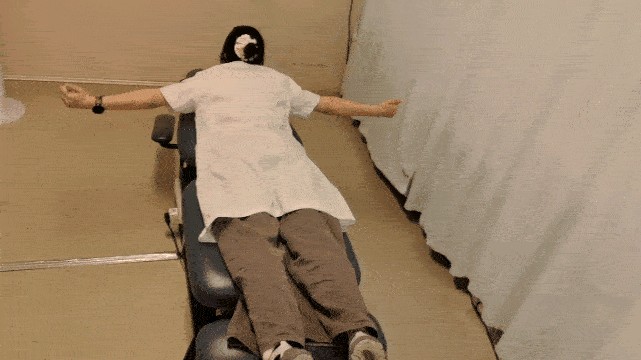 2、“T形”:训练斜方肌中束俯卧位,肩外展90°,肘部伸直,拇指朝上指向天花板,然后将手臂上抬,保持5秒再放下,每组10~15个,做2~3组。