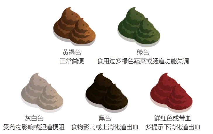 1.外观 第一,要看一下粪便的颜色。正常人的粪便呈黄褐色,如果粪便颜色发白、发黑、发红、发绿,可能是肝胆、胰腺、胃肠等部位出了问题。比如,大便呈鲜红色,多提示下消化道出血,如痔疮、肛裂、直肠癌等;若为黑色,在排除食用肝脏、动物血、铁剂或某些药物等后,多提示上消化道出血。
