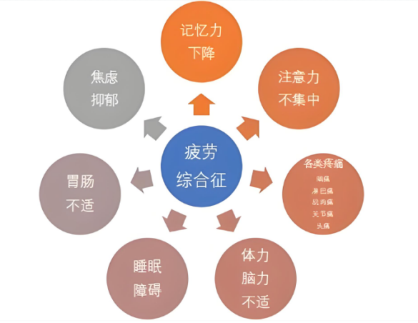 • 伴随症状:记性差、注意力不集中、肌肉酸痛、头痛、咽喉痛等
