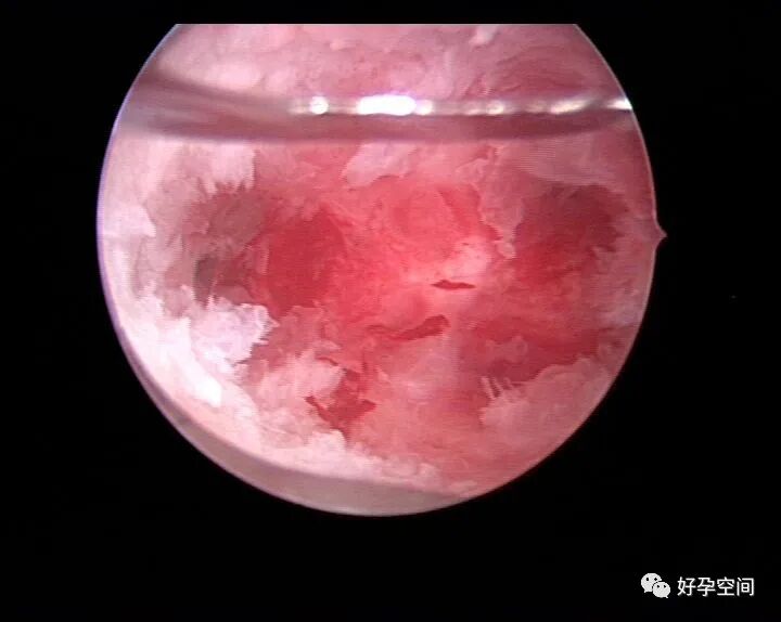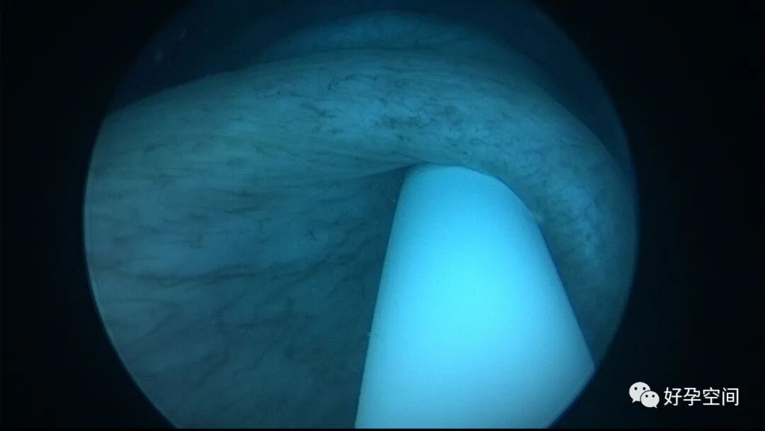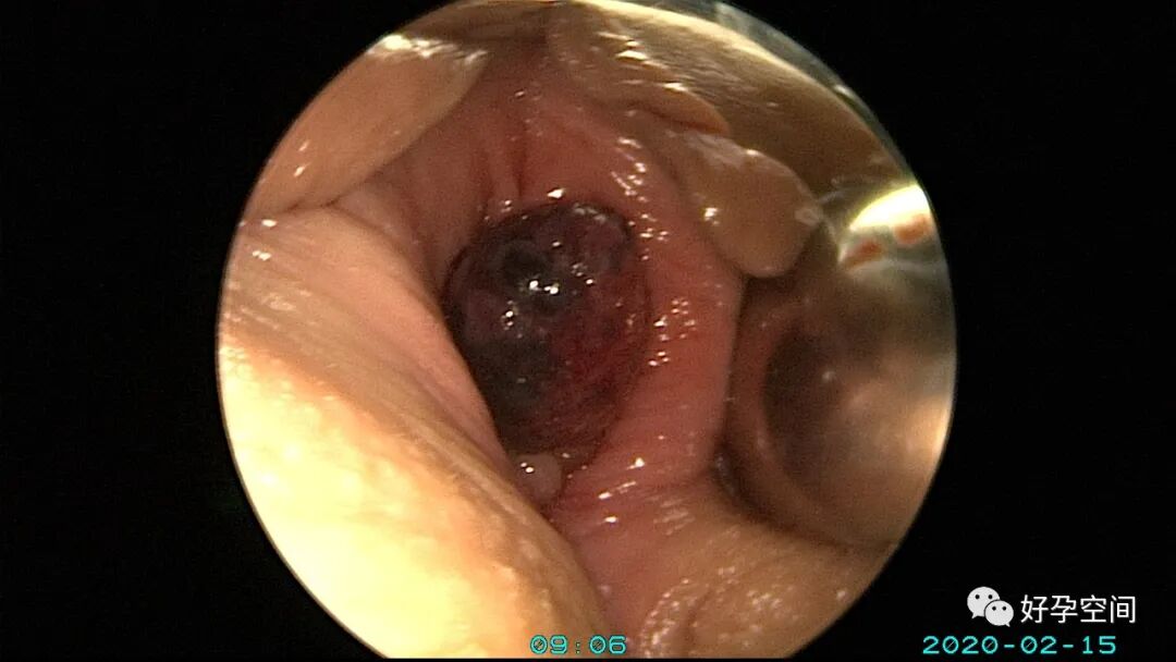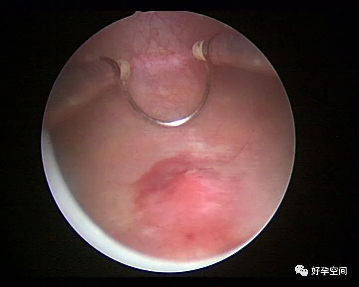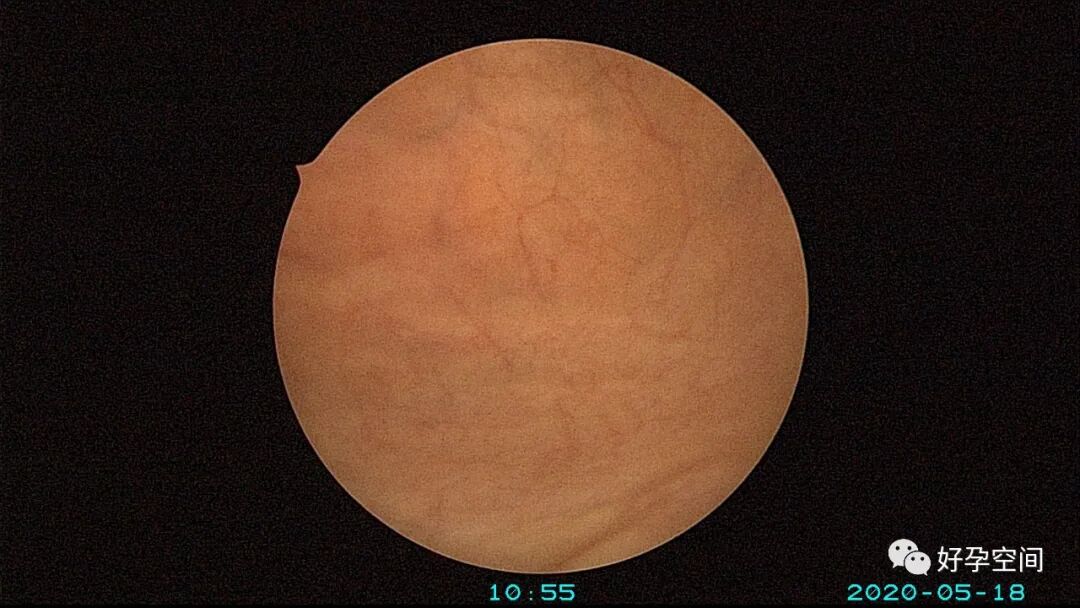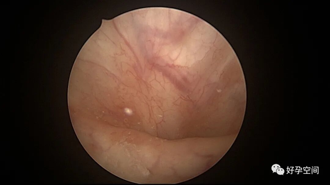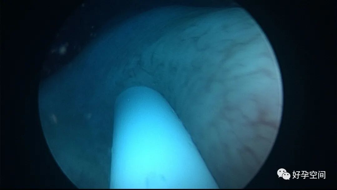 病例4:32岁,取卵13枚,取卵术后血尿膀胱内血块尿潴留,膀胱灌洗效果不佳,宫腔镜探查膀胱,清除血块,膀胱底见穿刺伤,电凝止血。