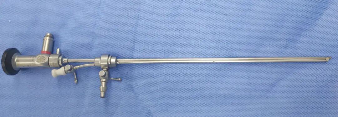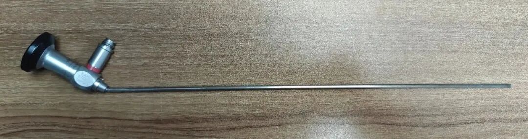 宫腔镜损坏:第一张图片上面的外鞘掉了一个卡紧销子,第二张图片内鞘多处压痕,第三张图片镜子断裂