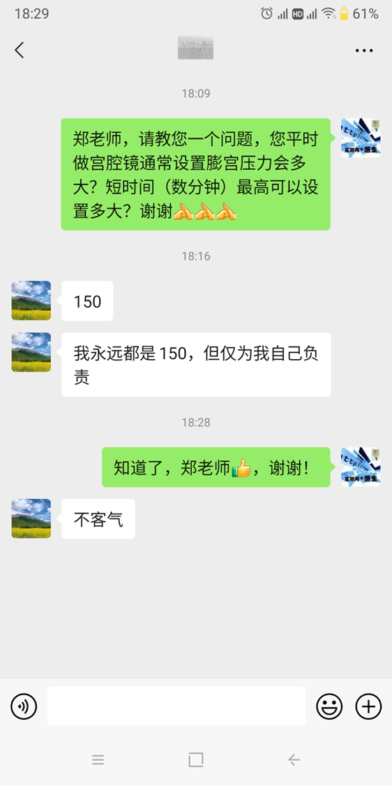 宫腔镜器械繁多:检查镜(分体式及一体镜)、操作镜、一次性宫腔镜等;单极、双极、冷刀、切割刀、电针、其他能量来源等;电切、电凝、混切、汽化、旋切等。膨宫泵参数包括压力、流速、流量等设置及膨宫泵位置高度设置,膨宫越好,对内膜损伤越小,膨宫压力根据病灶大小、视野清晰度、手术时间长短、麻醉方式、术者手术熟练程度及病人术中监测情况灵活设置,不是一成不变的,膨宫泵高度平手术床高度为好。尽量选择接近于等渗的膨宫介质:甘露醇、生理盐水、5%葡萄糖水等。冷光源亮度调节:宫腔出血、妊娠子宫脱膜、胚物残留等暗背景吸光,需调亮光源。术前虽然会对各种影响因素有所思考和选择,但涉及因素太多,总有想不到的时候,正是各种要素的奇妙组合和偶遇,让宫腔镜手术既有趣,又捉摸不定,就像开盲盒,有惊喜,个别时候也会有惊吓。宫腔镜器械需保持完好,器械损坏带“病”坚持使用影响手术进度,比如一个小配件的丢失导致镜子无法卡紧,手术过程中术者反复调节旋钮,难以专注于手术,存在安全风险。