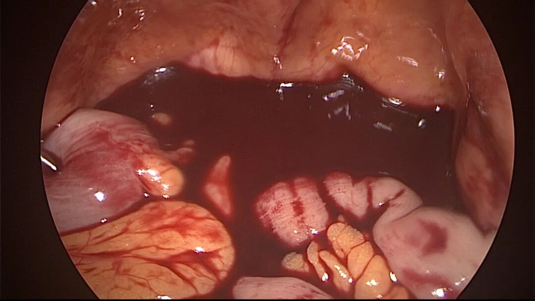 外院取环失败,子宫穿孔,盆腔积血