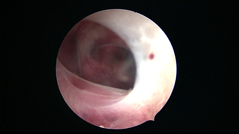 患者23岁,G1P0,外院稽留流产清宫术后发现宫腔粘连。2021年8月宫腔镜探查见宫腔两侧多重曲折粘连,AFS评10分,单极电针分粘,恢复宫腔形态,显露双侧输卵管开口,2021年9月宫腔镜二探取球囊。2021年12月自然妊娠,39+周剖宫产分娩。现28岁,G2P1,有再生育要求。