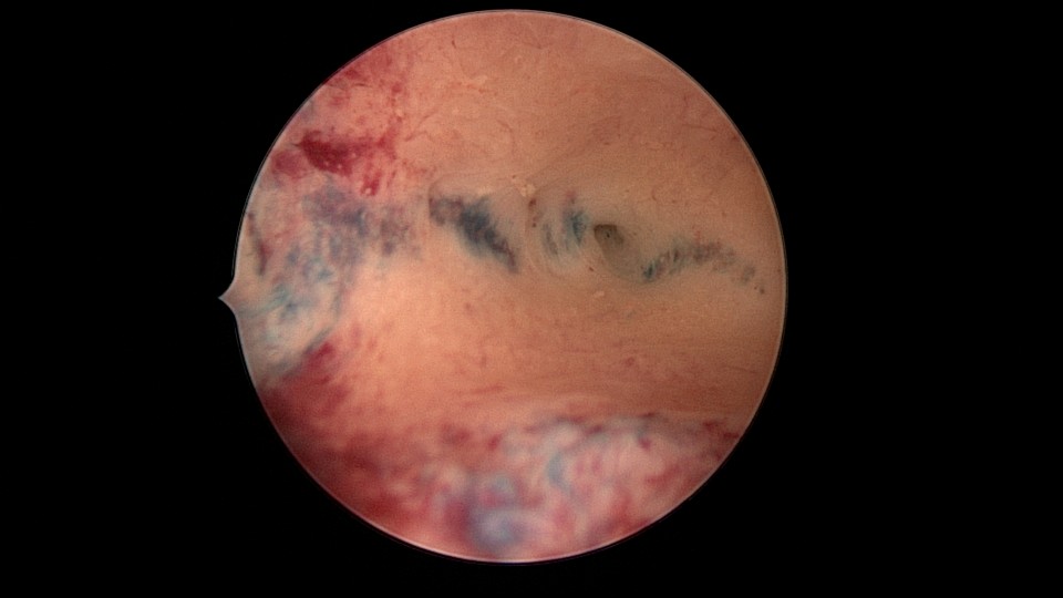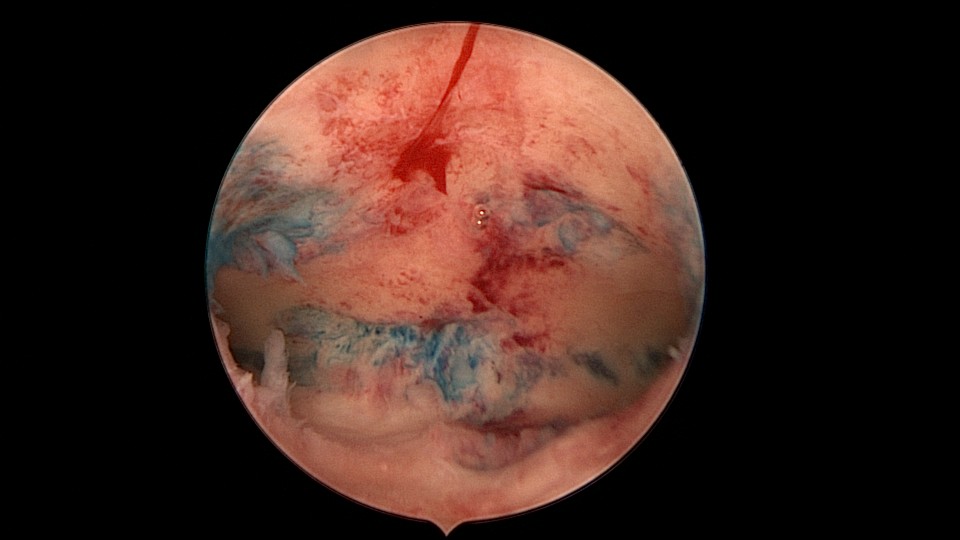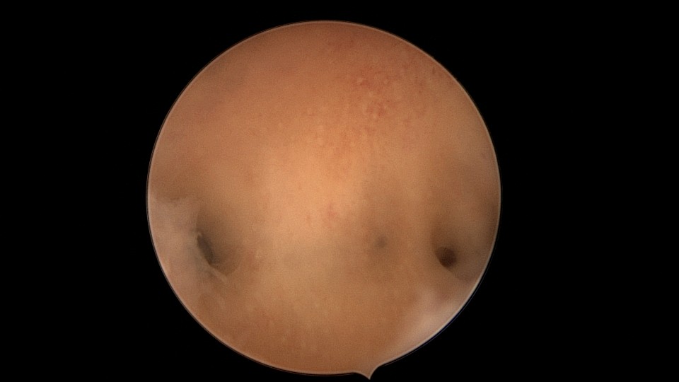 患者31岁,G2P0,复发性流产2次,B超提示宫腔粘连,2020年8月行宫腔镜探查,宫腔中段幕状粘连,粘连带表面内膜覆盖,形成两个假的输卵管开口,镜鞘分粘,进入宫腔上段,显露双侧输卵管正常开口,通液输卵管通畅。2021年3月发现自然妊娠双胎,随访病人,孕9周时一胎停育,另一胎发育良好,门诊保胎,外院足月分娩。现35岁,G3P1。