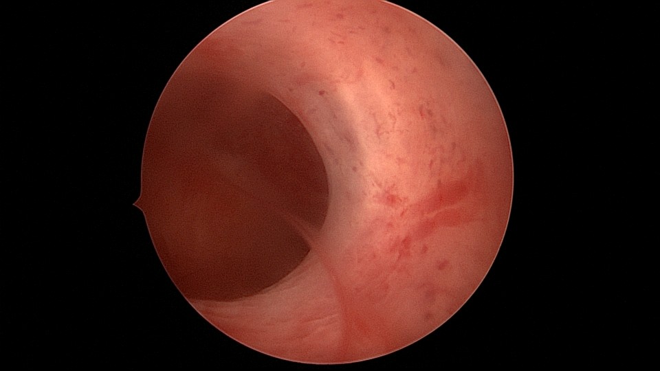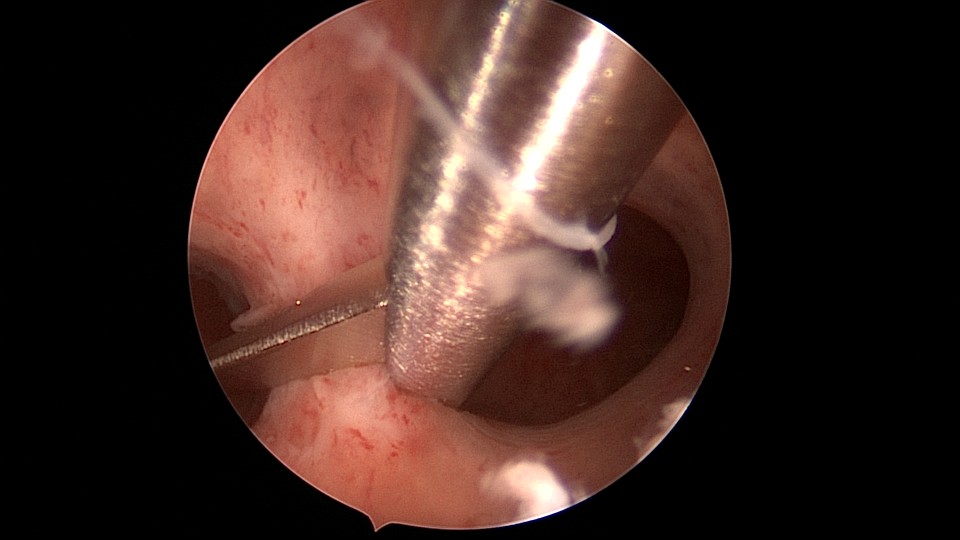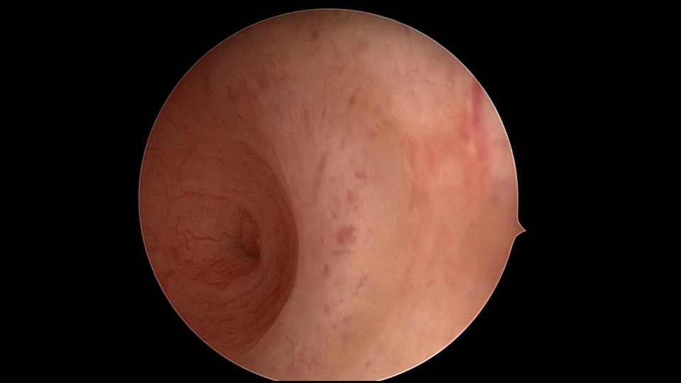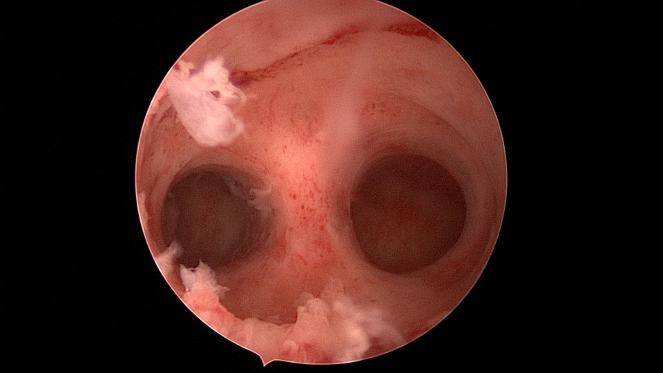 患者29岁,G1P0,继发不孕,2020年8月宫腹腔镜探查,大网膜与腹前壁多处粘连,子宫后壁与直肠前壁广泛粘连,宫腔中央型宽大柱状粘连,宫腔两侧少许粘连。电钩分离盆腔粘连,冷刀分离宫腔粘连,恢复宫腔形态,显露双侧输卵管开口,术中美兰通夜,双侧输卵管通畅。2020年10月宫腔镜二探取球囊,宫腔形态正常,双侧输卵管开口可见。2021年3月自然妊娠,外院足月分娩。现34岁,G2P1。