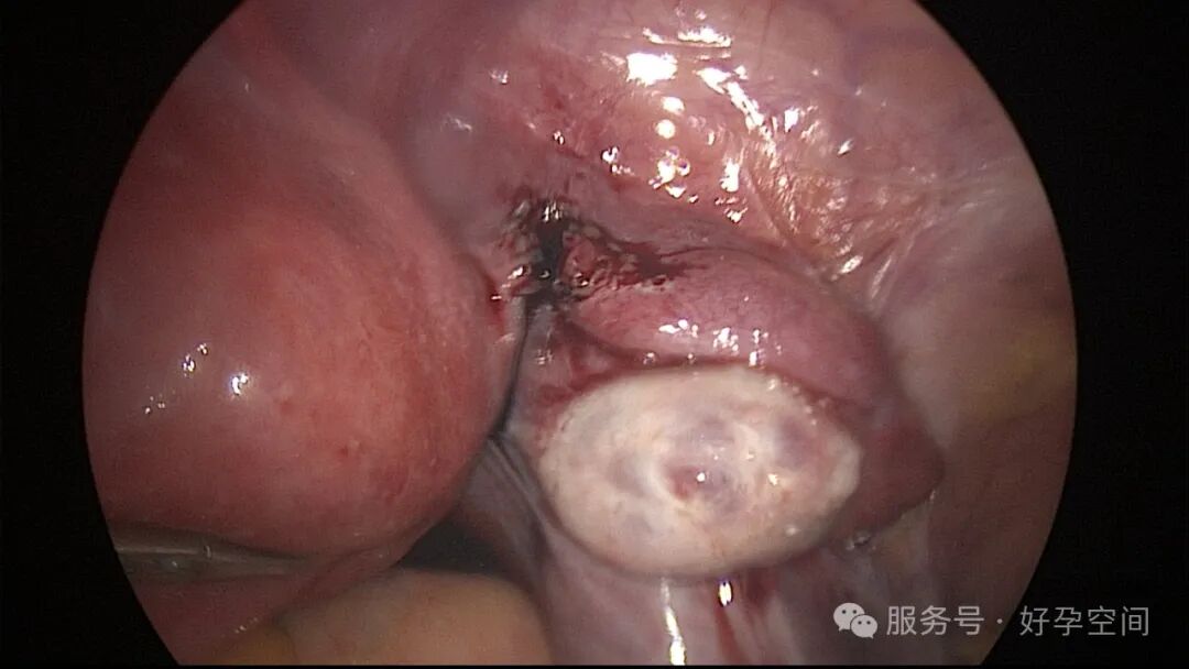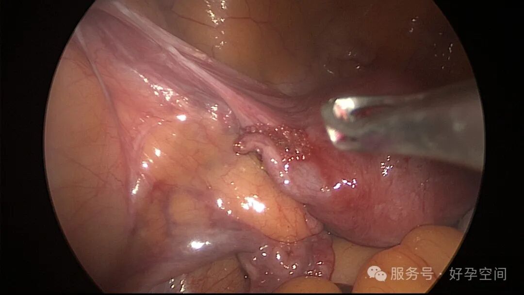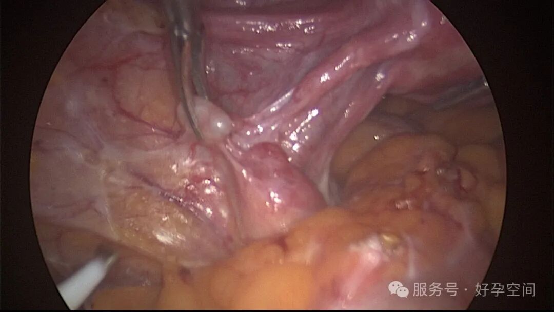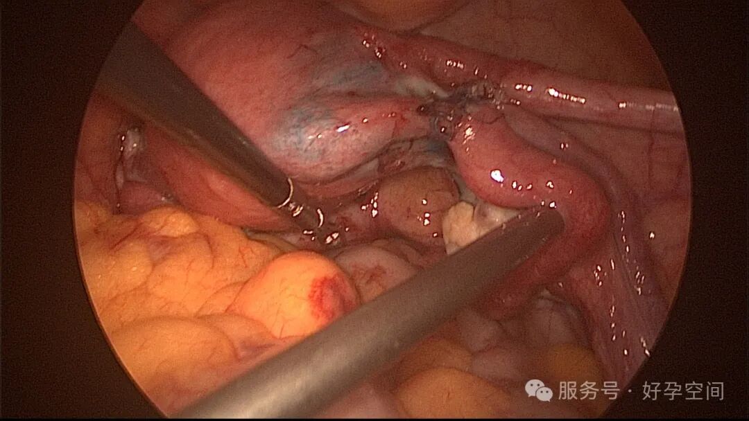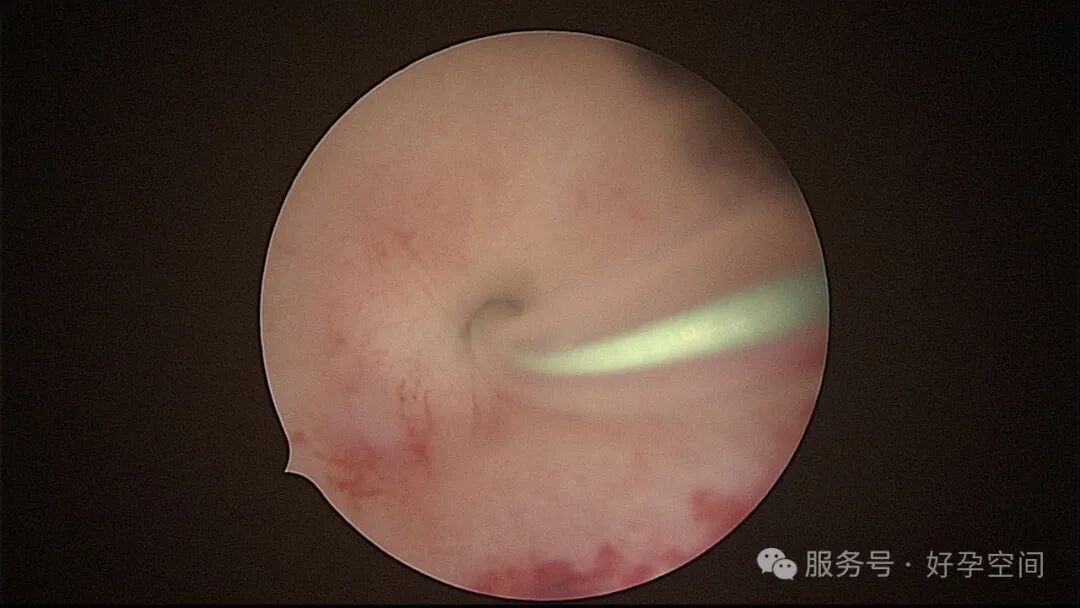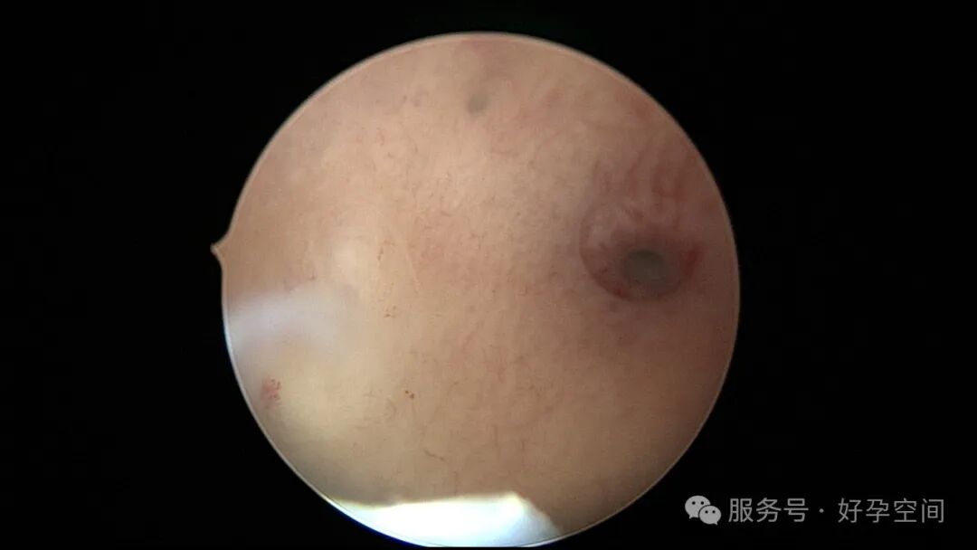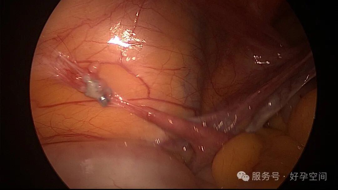 病例7:28岁,G2P2,剖宫产2次。输卵管结扎术后8年,再婚,2023年11月手术,输尿管导管做支架,美蓝通液左侧输卵管伞端见美蓝液流出,右侧输卵管伞端无美蓝液流出。2024年7月宫外孕保守治疗,2025年2月自然妊娠,稽留流产清宫,现备孕中。