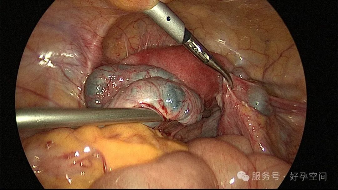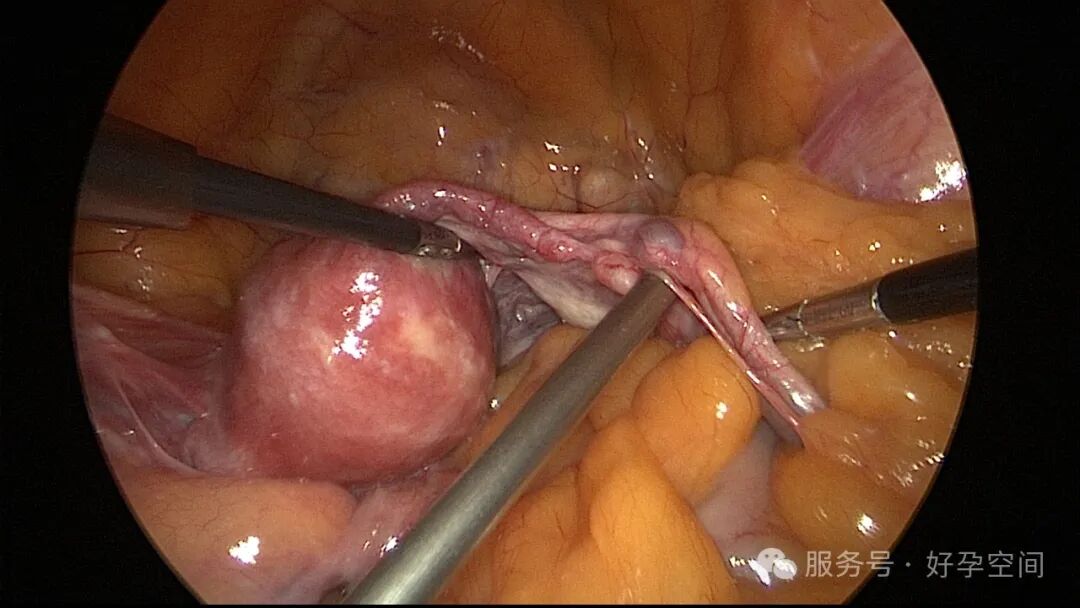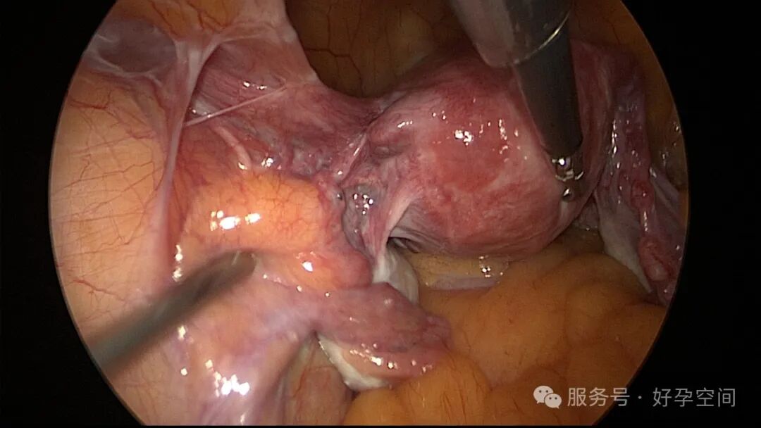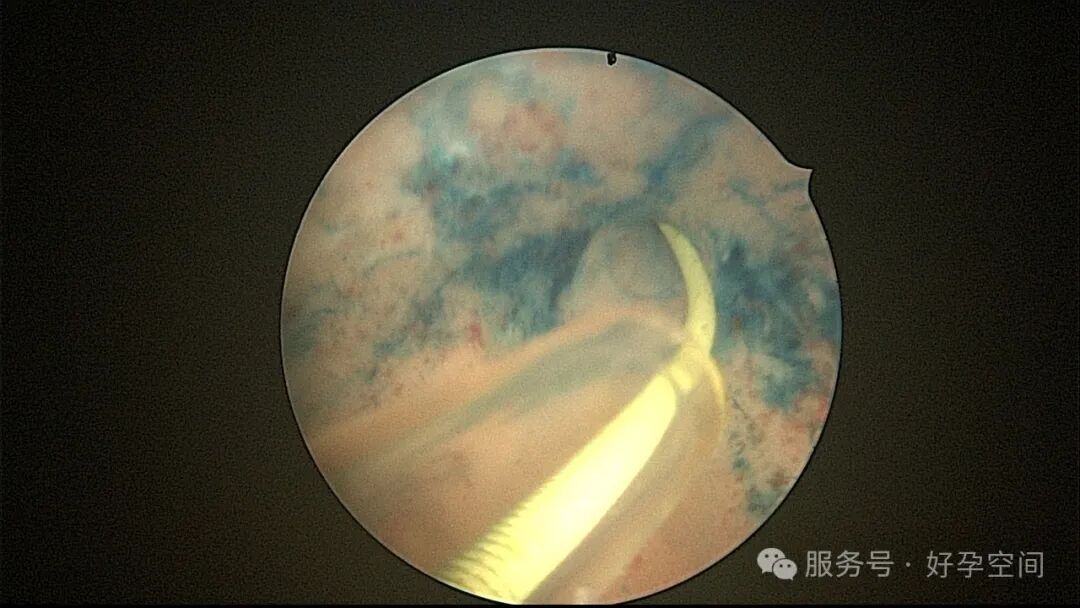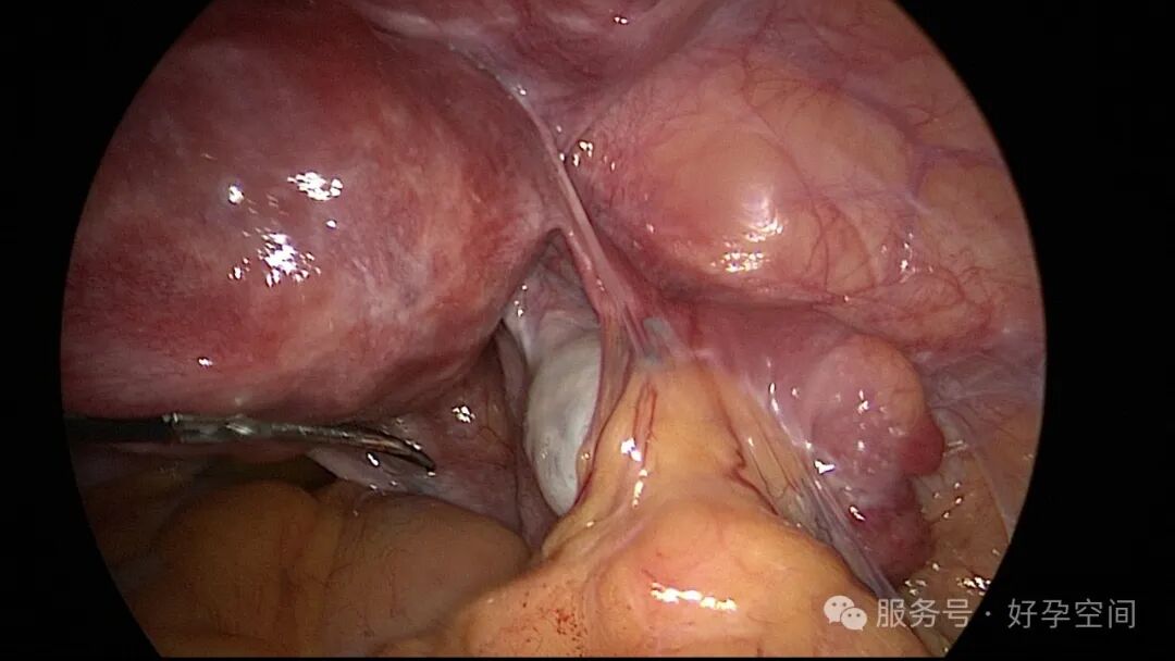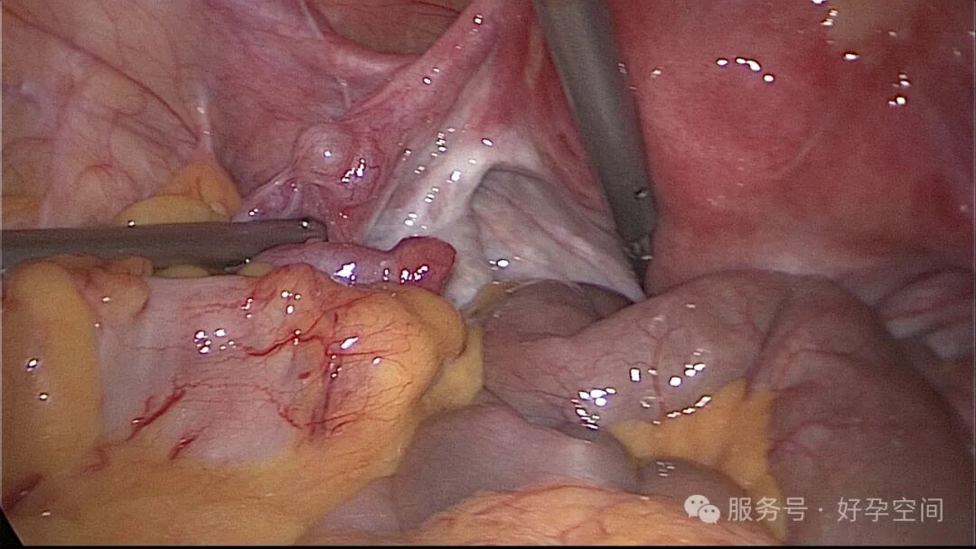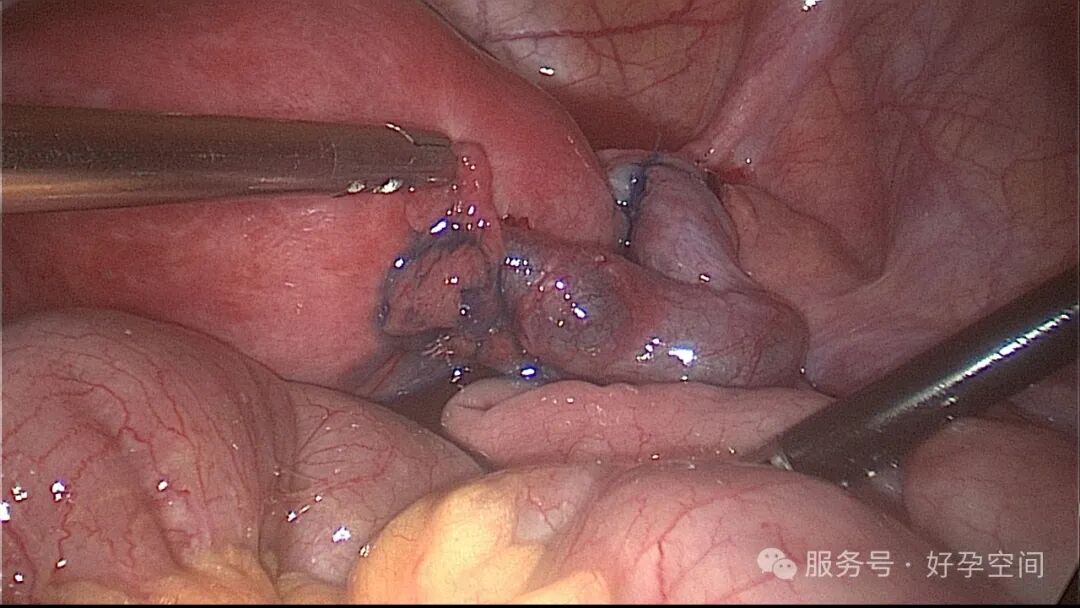 病例7:28岁,G2P2,剖宫产2次。输卵管结扎术后8年,再婚,2023年11月手术,输尿管导管做支架,美蓝通液左侧输卵管伞端见美蓝液流出,右侧输卵管伞端无美蓝液流出。2024年7月宫外孕保守治疗,2025年2月自然妊娠,稽留流产清宫,现备孕中。