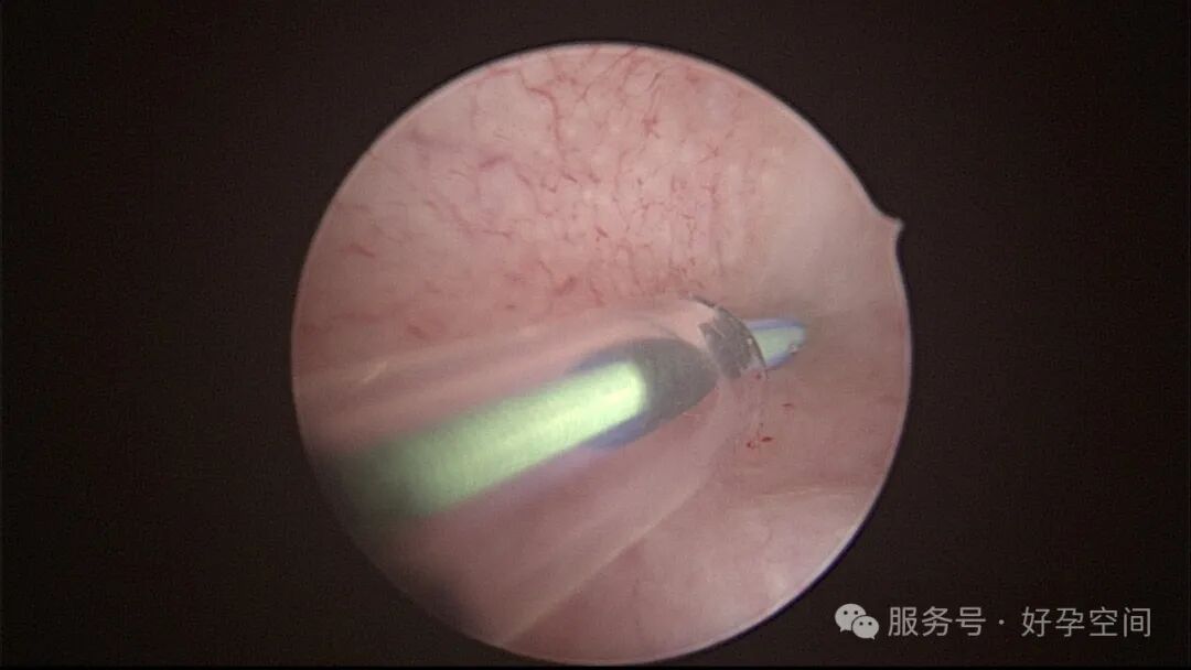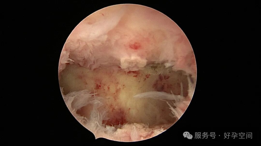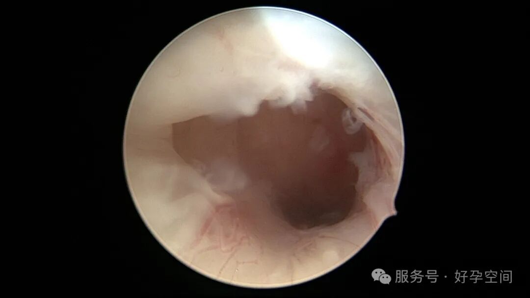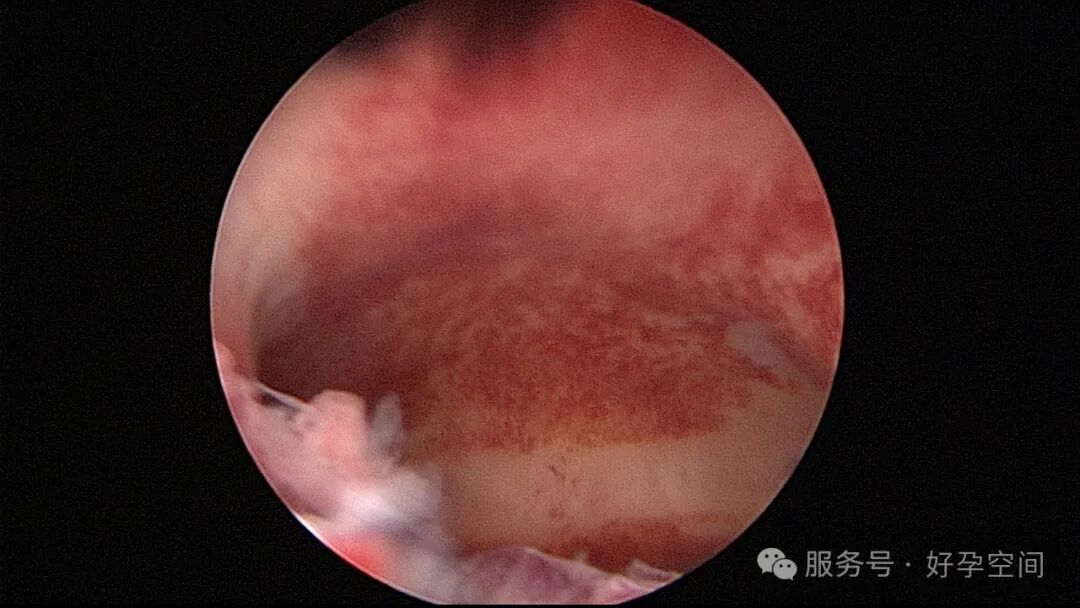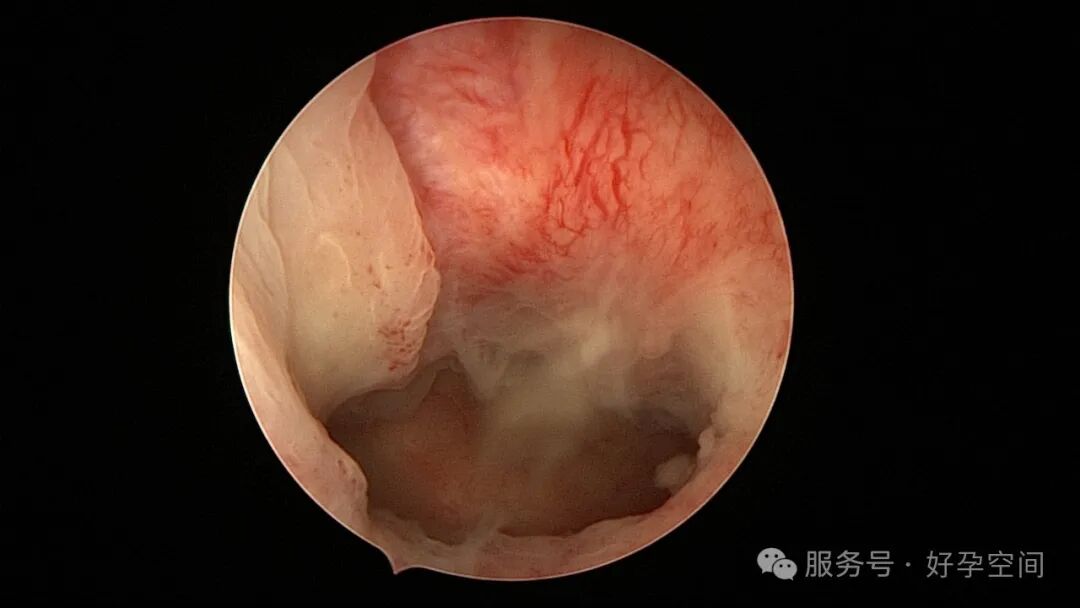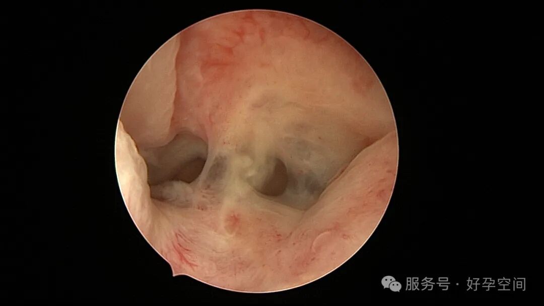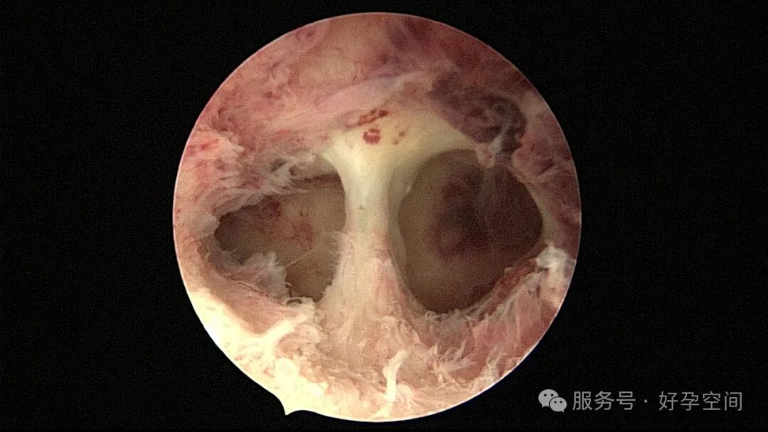 分粘后宫腔镜二探,残留少许膜性粘连,镜鞘分粘