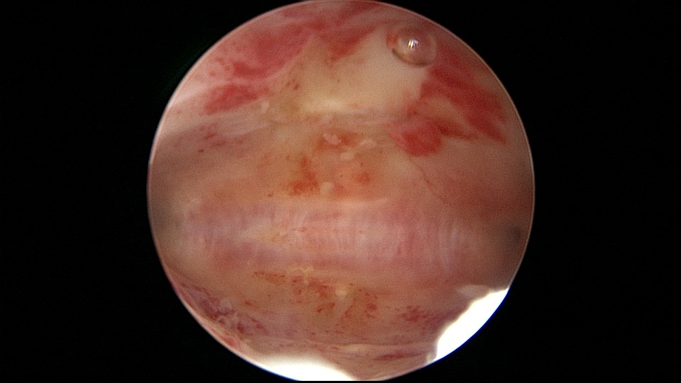 患者32岁,G5P0(我院宫腔镜术前孕产次),人流3次,药流1次,胎停1次。2019年B超提示宫腔粘连,曾在外院宫腔镜分粘,2020年7月计划外妊娠,我院门诊医生行药流+清宫(曾建议患者继续妊娠,但患者坚决要求终止妊娠)。2021年5月备孕前检查,内膜容受性差,宫腔容积1.258cm3,怀疑宫腔粘连。2021年6月初宫腔镜探查,宫腔下段粘连,宫腔中上段见不全子宫纵膈,单极电针分离宫腔下部及两侧粘连,进入宫腔中上段,切开不全子宫纵膈,暴露两侧输卵管开口,防粘连复发处理。2021年6月底宫腔镜二探取球囊,宫腔形态正常,双侧输卵管开口可见,宫内膜片状充血。2021年8月自然妊娠,2021年10月孕12+1周我院建卡,孕30+周产检后未到医院检查。2022年2月因胎膜早破脐带先露在成都某医院紧急剖宫产分娩1男婴,体重1900g,现小孩发育很好。2023年9月、2024年5月两次妊娠,人流终止。现37岁,G8P1。