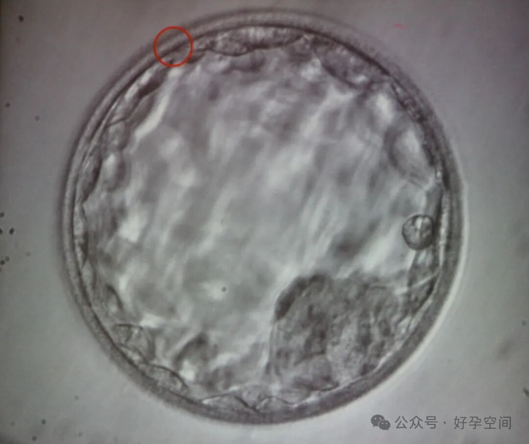 囊胚,100个细胞左右,形成液腔(受精后第4日)。受精后5~6日,囊胚的透明带消失。