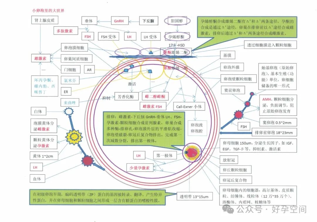 1、卵泡包含了很多基础理论:H-P-O轴、正负反馈、两细胞两促性腺激素学说、卵泡促性腺激素依赖-非依赖生长、激素-受体-靶器官、激活-抑制、募集-选择-闭锁、基因-编码-转录-翻译-蛋白-激素合成、排卵-血体-黄体-白体、生长因子、细胞因子、细胞器等等。