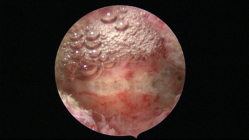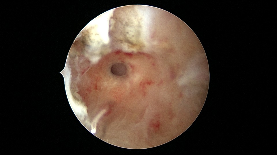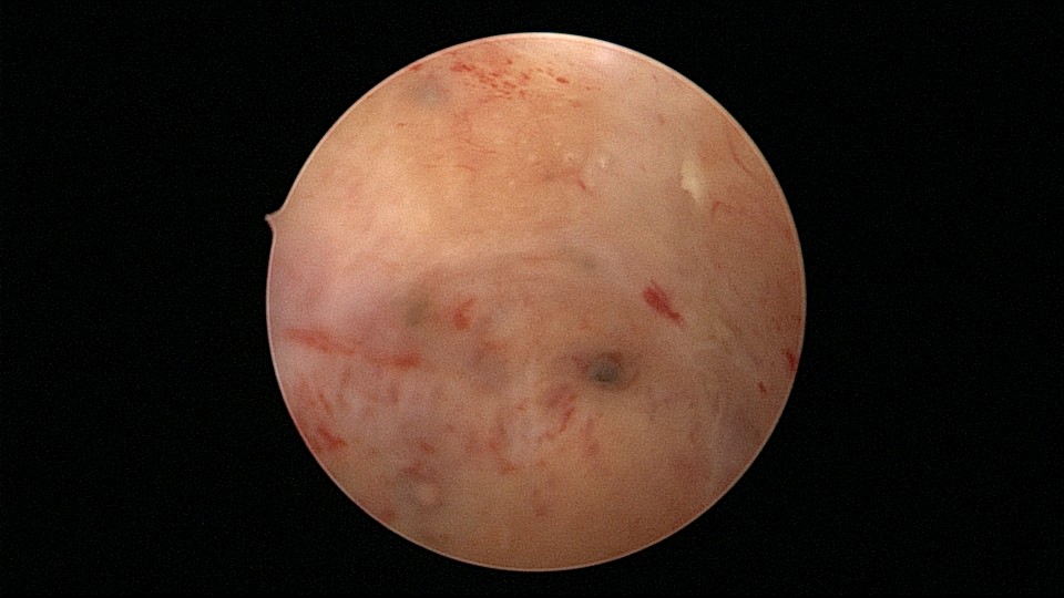 患者33岁,G5P2,顺产2次,胎停清宫后月经量减少,外院B超提示宫腔粘连。2021年5月宫腔镜探查,宫腔重度粘连,宫腔狭小,右侧输卵管开口可见,左侧输卵管开口未见,单极电针分粘,恢复宫腔形态,显露左侧输卵管开口(僵硬)。2021年6月宫腔镜二探取球囊,宫腔形态正常,双侧输卵管开口可见,宫内膜薄。2022年7月自然妊娠,2023年3月孕39+周顺产分娩。现38岁,G6P3,顺产3次。