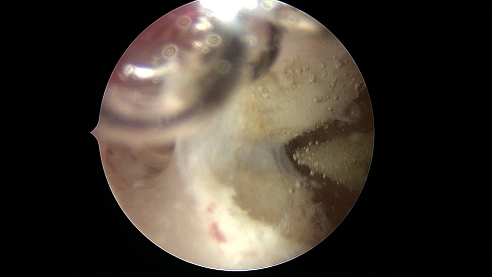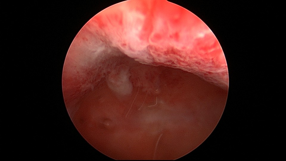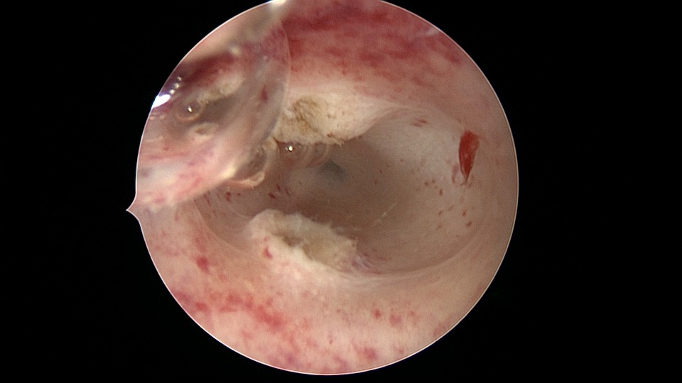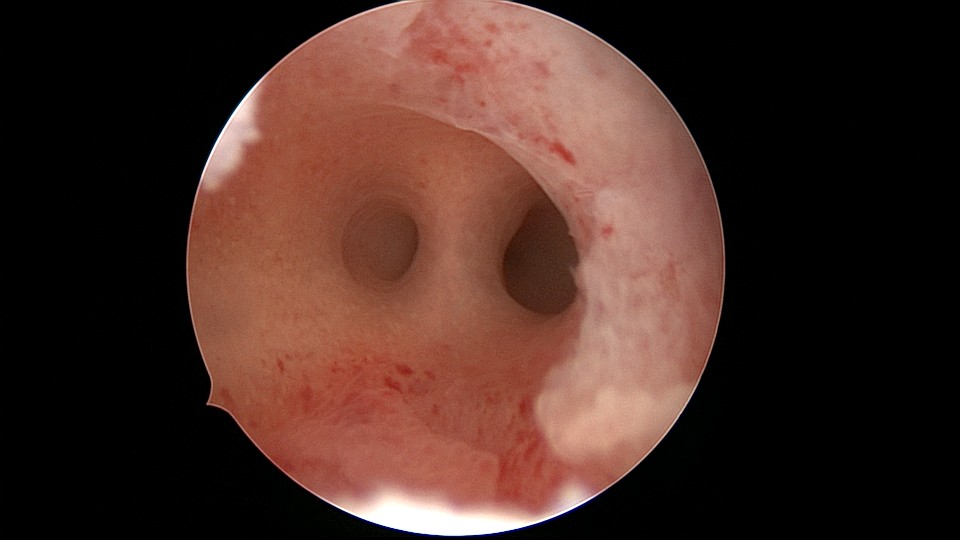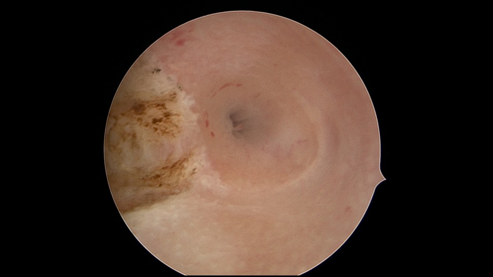 患者21岁,G2P0,两次胎停清宫,月经量减少,眉山某医院B超示宫腔容积小,2021年7月宫腔镜探查,见宫腔两侧、宫底部及左侧宫角粘连,单极电针分粘,恢复宫腔形态,显露双侧输卵管开口。2021年9月宫腔镜二探取球囊,宫腔形态正常,双侧输卵管开口可见。2022年9月自然妊娠12+周,我院建卡,2023年5月孕38+周剖宫产分娩。2025年3月宫腔镜取胚1次,现25岁,G4P1,剖宫产1次。