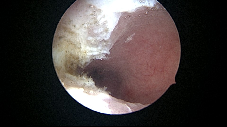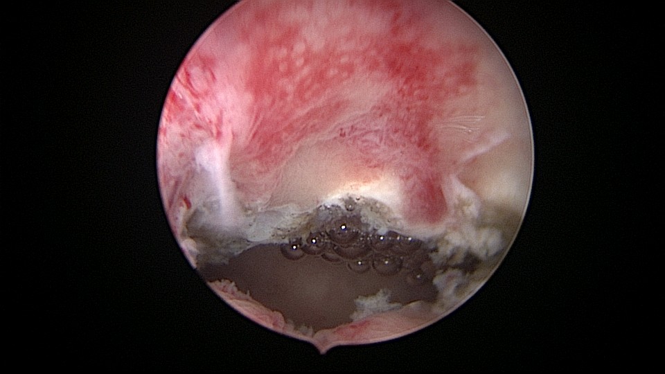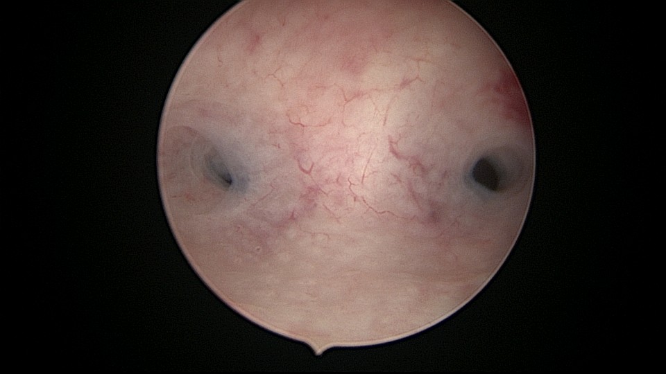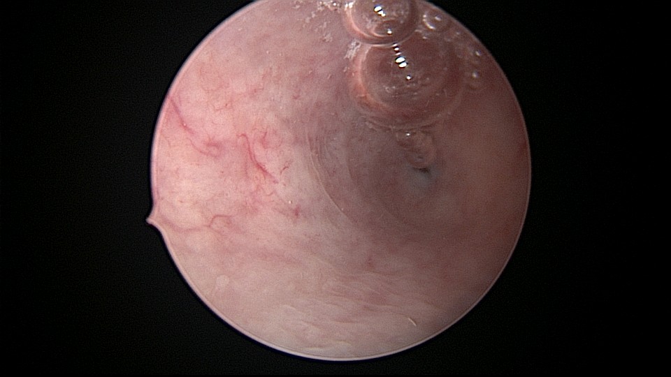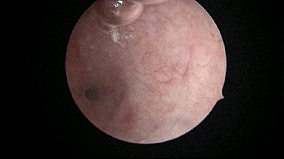 患者32岁,G2P0,自然流产2次,外院行清宫术,术后月经量减少一半。2019年6月市妇幼分粘,术后月经无改善,宫腔粘连复发,2020年11月宫腔镜探查,宫腔中上段幕状粘连,形成两个假的输卵管开口,双极电针分粘,恢复宫腔形态,显露正常的输卵管开口。2020年12月宫腔镜二探取球囊,宫腔形态正常,双侧输卵管开口可见,内膜充血。2022年5月自然妊娠,2023年1月剖宫产分娩一女婴(37+2)。现37岁,G3P1。