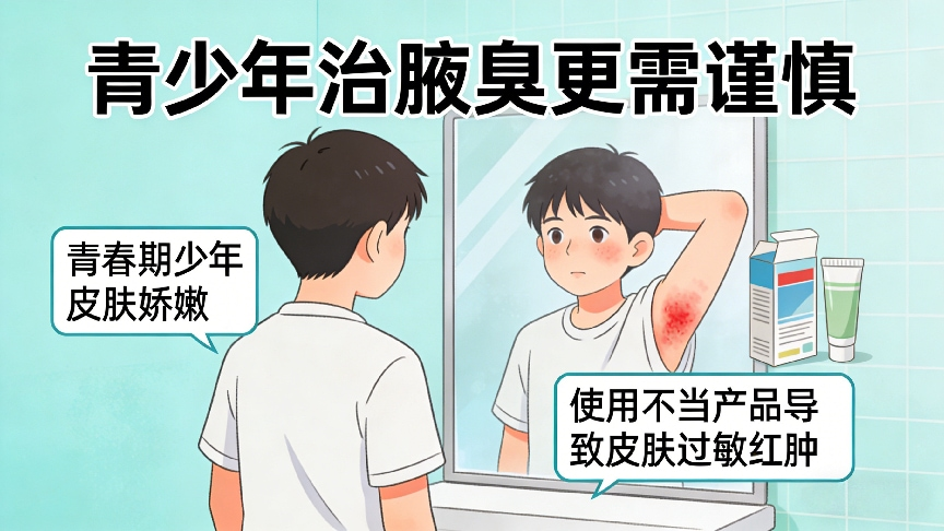 青春期是身体快速变化的阶段,激素波动明显,大汗腺分泌尤为活跃,容易产生异味。但同时,你们的皮肤比成人更娇嫩,身体也仍在发育。如果随意尝试成人用的强力止汗产品、来历不明的偏方或药膏,很可能导致皮肤过敏、红肿、破损甚至感染,严重还可能干扰正常的生长发育,得不偿失。