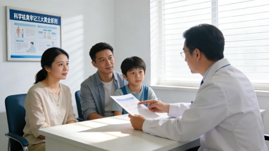 ③反复出现异味,应及时在家长陪同下,前往正规的腋臭专科医院。科学的干预能安全、有效地解决问题,切勿拖延或自行尝试不当方法,以免加重情况。
