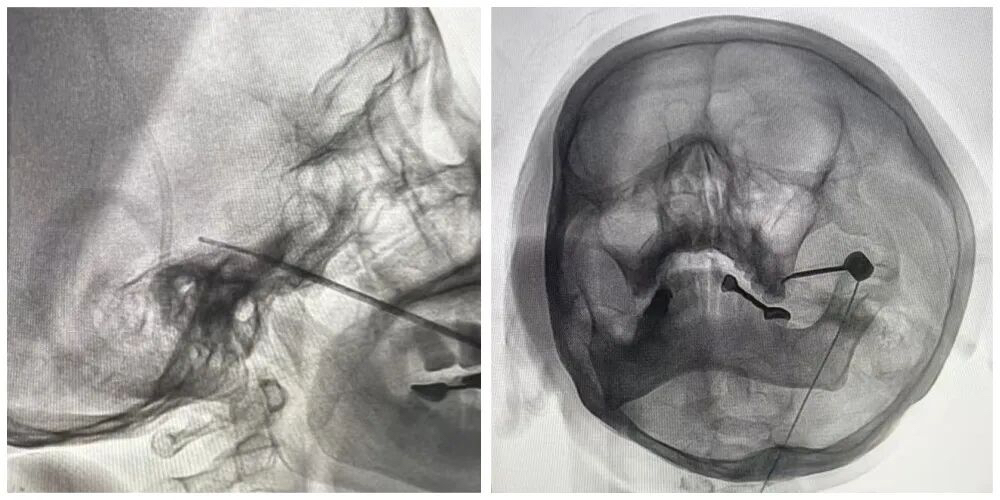 手术过程中,王主任在精准定位下,将一根穿刺针插入三叉神经出入颅腔部位卵圆孔,进而释放一个小小的球囊压迫数分钟,来捣毁传导神经痛的“中转站”,手术仅用时一小时便顺利完成。