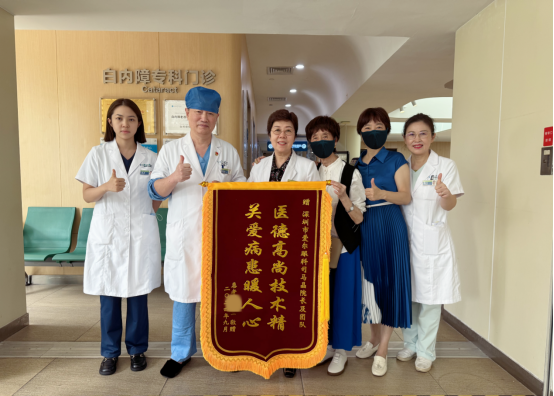 完成手术的刘奶奶心情无比轻松,坐在轮椅上被推出手术室时,她向医护人员竖起了大拇指。两天后,刘奶奶又顺利进行了另一只眼的手术。通过飞秒激光辅助白内障手术,一次性解决了她的白内障、远视、散光及老花等多种眼病困扰。术后,她为医护人员送来锦旗,激动地抱着司马晶教授道谢:“感谢您治好了我的眼睛,我现在看远看近都的很清楚,真后悔没有早点做这个手术!”