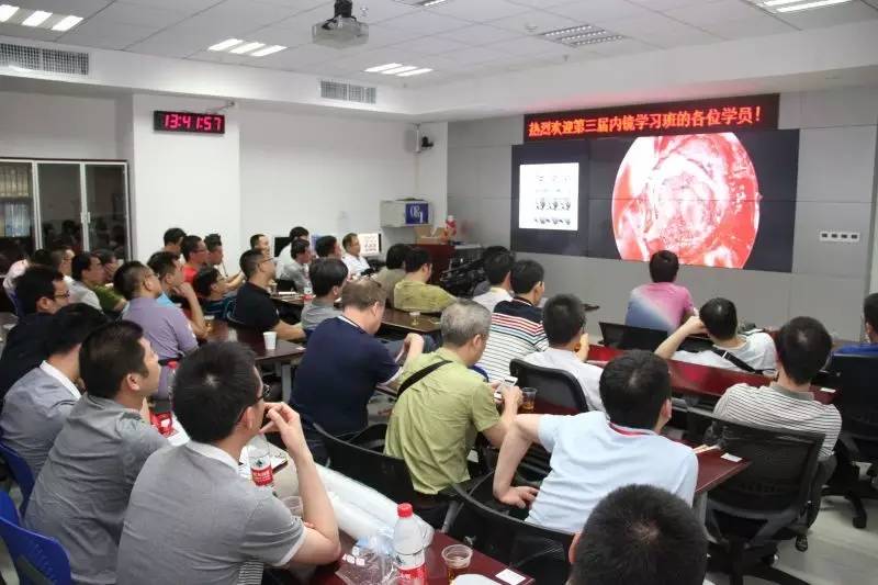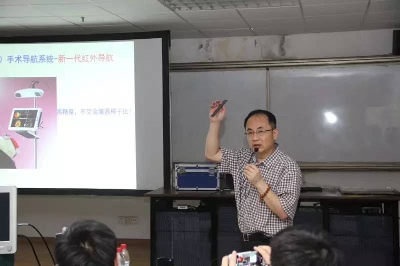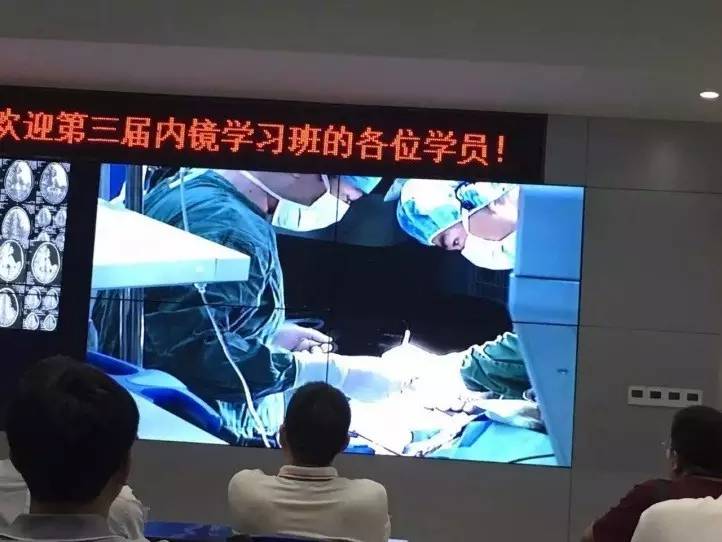 操作结束后学员们集体来到神经外科会议室,现场观看由黄国栋主任主刀、李维平副院长讲解的神经内镜经鼻蝶巨大垂体瘤切除手术实时转播,一个小时顺利全切肿瘤,娴熟精湛的手术技术得到了学员们阵阵赞叹。次日再次全程现场直播了黄国栋主任主刀的两例神经内镜手术,运用了我科最新神经导航集成神经内镜技术,半小时为一例7岁患儿完成了颅内巨大蛛网膜囊肿侧脑室造瘘术,以及一例脑积水患者行第三脑室底脚尖池造瘘术,改变了传统的手术治疗观念,获得了学员及同行的高度评价及认可。