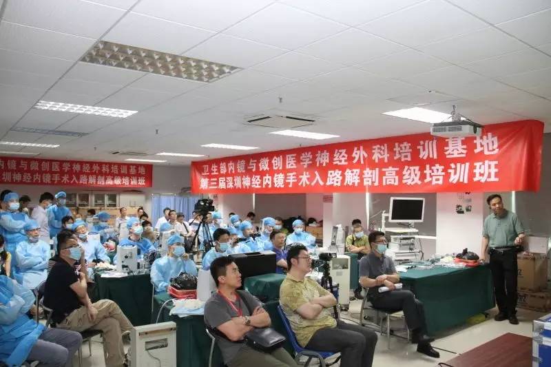 本次培训班还邀请了中国医师协会神经外科医师分会神经内镜专家委员会副主任委员、复旦大学中山医院神经外科主任张晓彪教授、北京天坛医院神经外科桂松柏教授讲授了神经内镜经颅及经鼻侧颅底的解剖及临床应用。本次培训内容涵盖神经内镜(脑室镜和颅底镜)的理论讲解、尸头解剖、操作训练、手术演示等,为学员掌握神经内镜基本技术提供了一个良好的训练平台,推广了内镜与微创神经外科技术的应用。