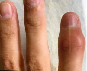 2.关节肿胀疼痛:手指或脚趾整体肿胀如“腊肠”,手肘、膝盖等关节疼痛、肿胀、活动不利索,甚至变形。