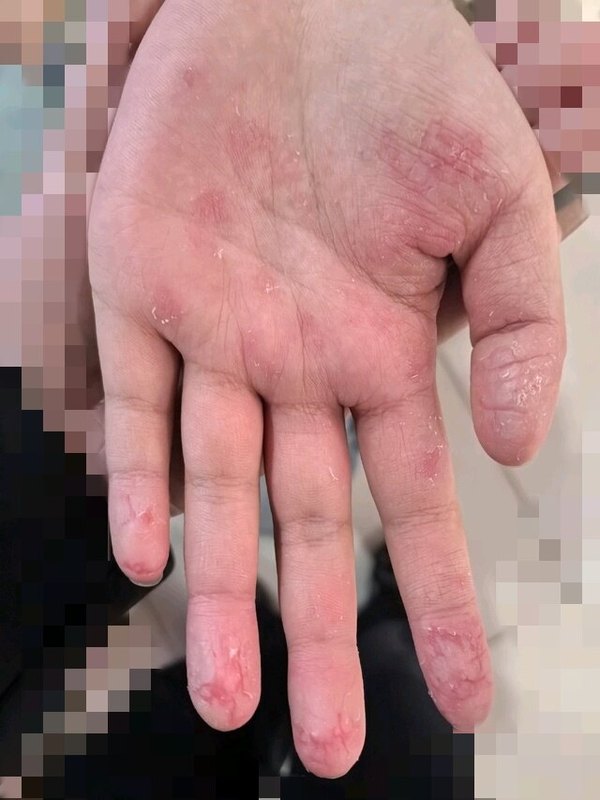 一位12岁的男孩,孩子手长年爆皮还痒,夏天不爆皮,春秋严重,爆皮之前手心痒,现在严重时疼,检查微量元素不缺。他爸爸小时候就那样。开了恢复细胞组织的药等等无效。