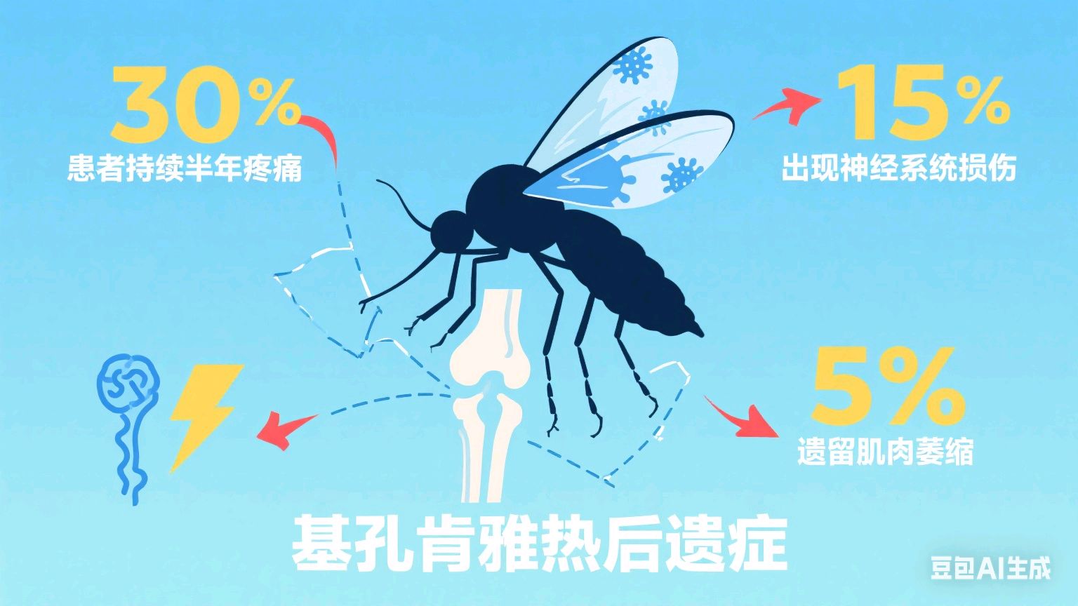 夏夜里的一声蚊叮,或许不只是红包那么简单。2024年广东报告的基孔肯雅热病例中,超30%患者出现持续半年以上的关节疼痛——这种被称为“碎骨热”的病毒,正以隐蔽的方式留下“后遗症陷阱”。今天我们用3组数据拆穿真相,教你避开这个“隐形健康炸弹”!