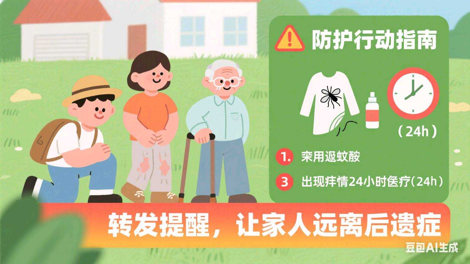 记住:基孔肯雅热没有特效药,但早期干预能将后遗症风险降低40%! 点赞这条科普,转发给常去户外的家人朋友,让我们一起筑牢“防蚊+监测”的健康防线!