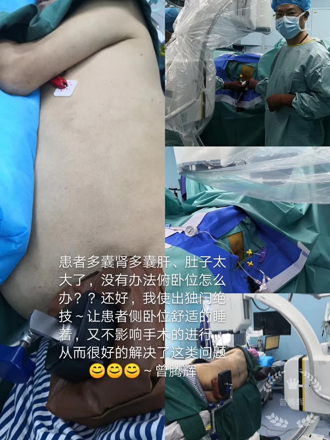 这位患者除了腰椎疾病,还患有多囊肾多囊肝,肚子太大了,手术姿势没有办法俯卧位怎么办?还好,我使出独门绝技,让患者侧卧位舒适的睡着。虽然手术难度增加很多,但是对我来说当然没问题,我曾发表过论文详细介绍脊柱侧卧位手术,从而不影响手术的进行,很好的解决了这类问题。