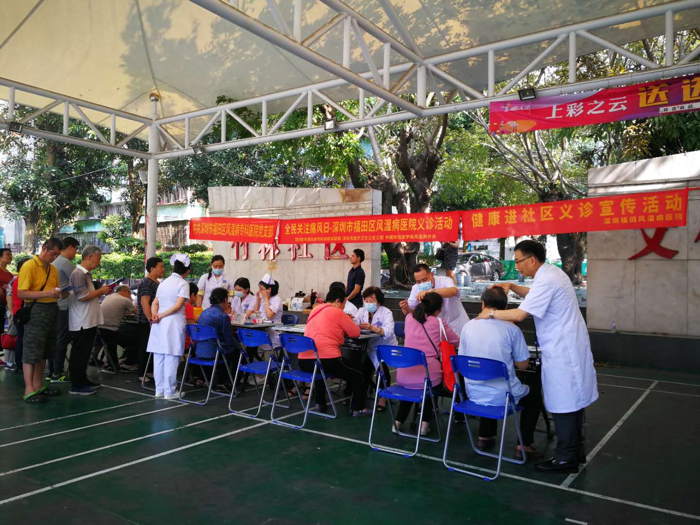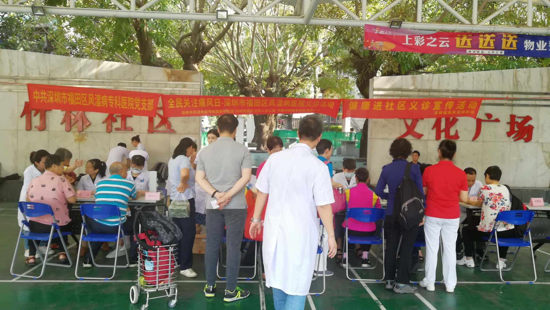 深圳市福田区风湿病专科医院今天上午在竹林社区文化广场举行大型痛风义诊活动。健康进社区,推动治病防病,深受社区居民欢迎!